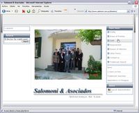 Cliente: Salomoni & Asociados - Asunción - Paraguay. Tema General: Estudio Jurídico. Resolución óptima: 800 x 600 - 1024 x 768. Compatibilidad: Internet Explorer, Mozilla Firefox y Netscape Navigator 4.0 o superior. Idioma: Español / Inglés Comentario: Rediseño general del Sitio web con programación PHP, MySQL, HTML, DHTML, Javascript client side, Flash, Contenido dinámico mediante Panel de Administración, AJAX. |